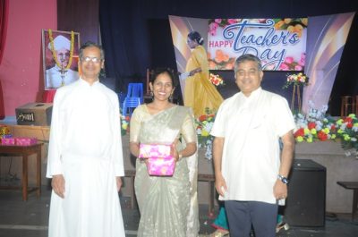 The Parent-Teacher Association (PTA) of St Aloysius High School organized a grand Teachers’ Day celebration in the school hall to honour and appreciate the teachers of the institution. The event was graced by rector Fr Melwin Pinto SJ, Fr Edward Rodrigues as the special guest, Fr Johnson Pinto SJ, headmaster, assistant headmaster Lancy D’Souza, retired staff, and both teaching and non-teaching members of the staff were also present, adding warmth and enthusiasm to the occasion.