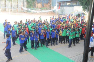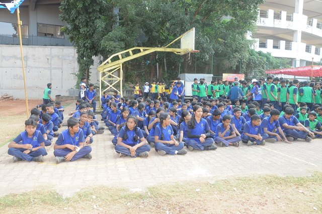 The sports meet was declared open by the guest by releasing tricolor balloons in the air. Oath was taken by Miss Diya, the sports secretary of our school on behalf of all the students. Headmaster delivered the welcome address. Master Samhith Raj, the SPL of the school proposed the Vote of thanks.