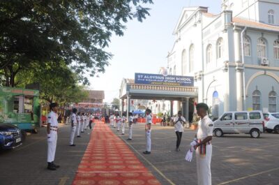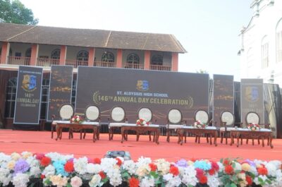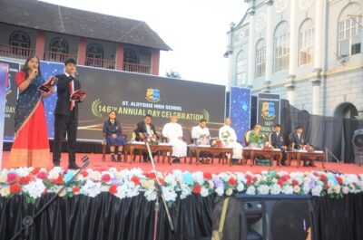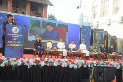 The 146th Annual Day Celebration of St. Aloysius High School, Kodialbail, Mangalore, was held on December 13th, 2025. The beautiful evening began with the rendition of songs in different languages by the students. The School Band and the NCC Cadets ushered the dignitaries. The Melody Club led the gathering of parents, guests, and students into prayer. Mr. Lancy D’souza, the Asst. Headmaster, welcomed the gathering.