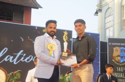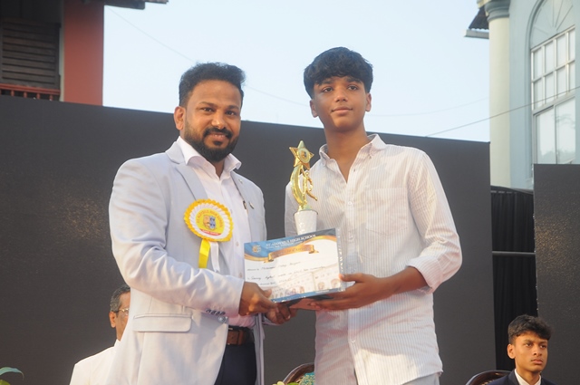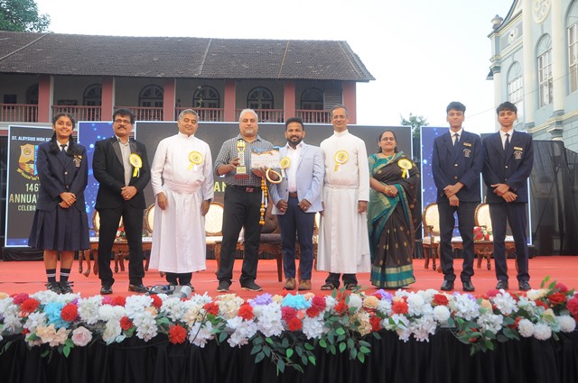 Mr Mohan Raj, an Alumnus of the School, Managing Director of Bright Globe Pvt Ltd & Chairman of bands Expo 2025 Chief Guest, Rev. Fr. Melwin Pinto S.J. Rector, St. Aloysius Institutions, presided over the function. The dignitaries including Rev. Fr. Johnson R Pinto S.J., the Headmaster, Mr. Lancy D’souza, Assistant Headmaster Mrs Reshma Bhat the Vice President of the school PTA, felicitated the student achievers in academics, co-curricular activities, sports and athletics with certificates and mementos.