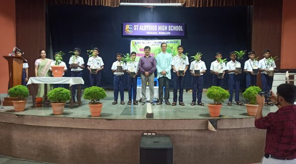 St Aloysius High School Kodialbail Celebrates ‘World Environment day’. To spread awareness among the students about saving our environment from various types of pollution and to plant more saplings and to protect it, ‘A world environment day’ was celebrated on 13th June 2025. Rev. Fr. Johnson Pinto S J, the Headmaster, Mr Lancy D’ Souza, Assistant Headmaster were present for the celebration. God’s presence was invoked through a prayer song....Read More